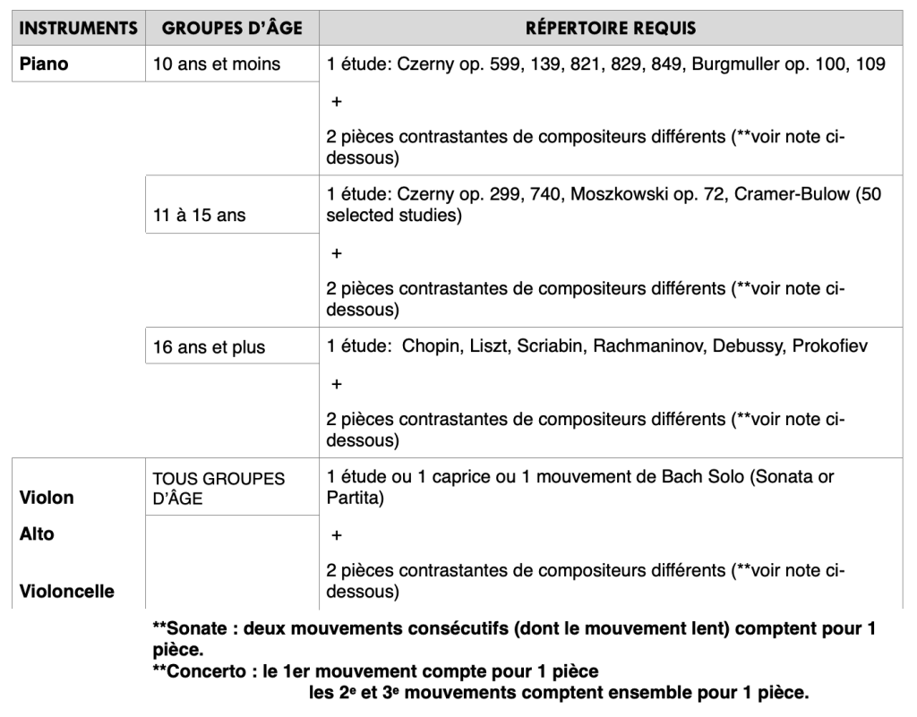 Veuillez lire attentivement les règlements du festival, ainsi que le répertoire requis pour chaque option.